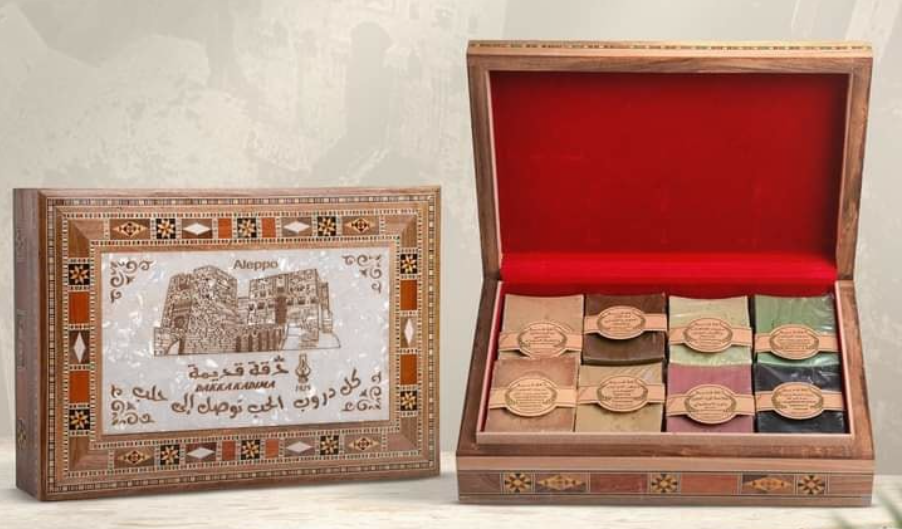 صابون غار – علبة خشب فاخرة 9 قطع – دقة قديمة هدية من حلب